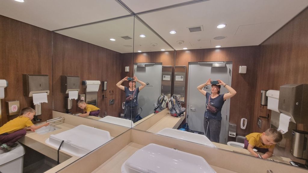 Am Flughafen in Abu Dhabi gab es gemütliche Sofa-Ecken und ich setzte mich mit meinem Sohn auf ein Sofa gegenüber von einem jungen Mann, der muslimisch gekleidet war. Ich überlegte mir schon, ob es hier überhaupt angebracht ist als Frau in eine Sofa-Ecke zu sitzen, wo bereits ein Mann ist – oder wie die Gepflogenheiten in den Vereinigten Arabischen Emiraten diesbezüglich wohl seien.