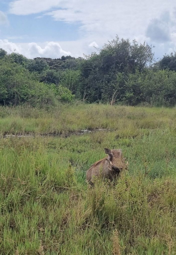 Ja, wir waren schon auf unserer ersten Safari im Nairobi Nationalpark. Was haben wir dort in der Wildnis gesehen? Viele Giraffen, Antilopen, Gazellen, Strausse, verschiedene kleine Vögel, Äffchen – und ein Pumba (Warzenschwein), ein Nilpferd (im Wasser), ein Dreihorn und eine junge Löwin. Was noch fehlt: Zebras, Nashörner und Elefanten. Übrigens – weisst du welches Tier man am seltesten sehen kann auf Safari? ……Schlangen. Für alle, die sich also Sorgen machen wegen den Giftschlangen – ihr müsst grosses Glück haben, ihnen überhaupt zu begegnen. 😉 Für die Elefanten ist der Nairobi Nationalpark zu klein, deshalb gibt es dort keine – ausser im Waisenheim (siehe nächster Abschnitt).