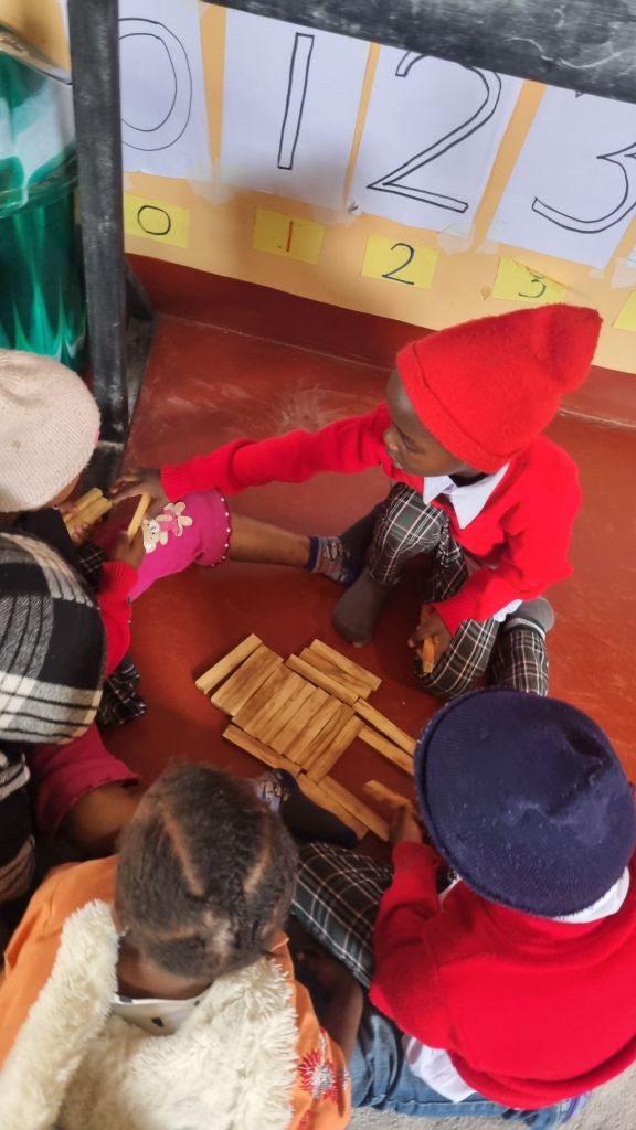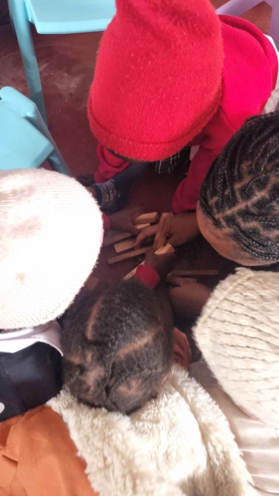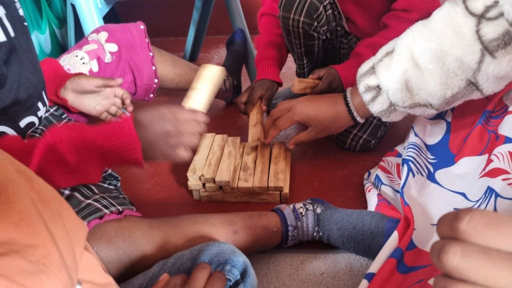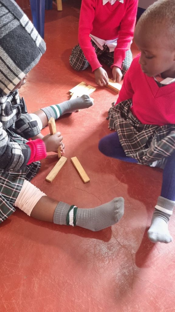 Letzte Woche habe ich bei einem Schreiner im Dorf Bauklötze für die Kinder produzieren lassen – und wie ihr seht, waren sie sehr kreativ und freudig am Spielen damit. 🙂